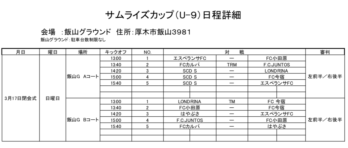 P.S.T.C. LONDRINA 9-0 FC小田原(得点者 : 山田5、雨宮、金内、上村、多賀)TRM
